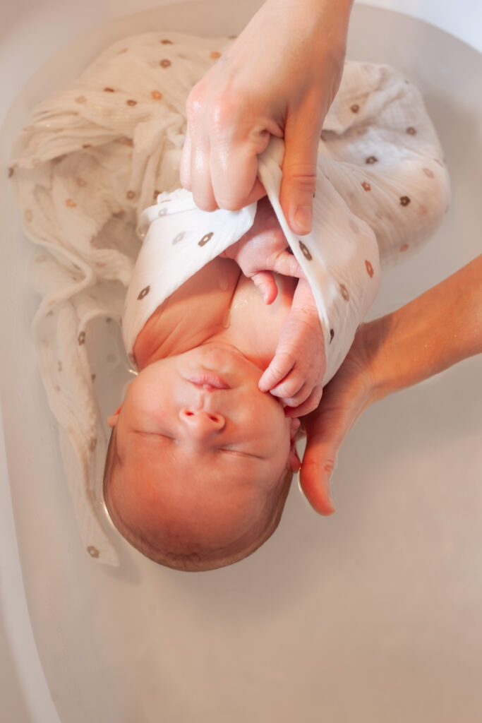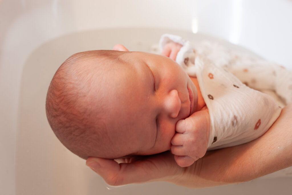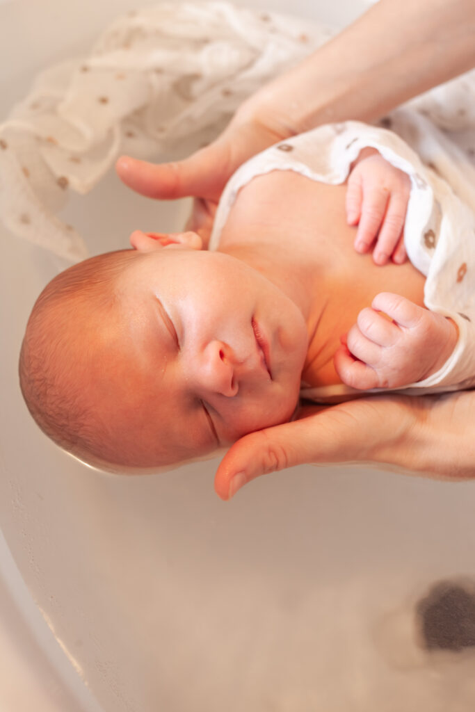 Nous avons fait un bain thalasso à notre bébé. Albane a capturé ce si beau moment tout en restant discrète. Les clichés sont magnifiques.