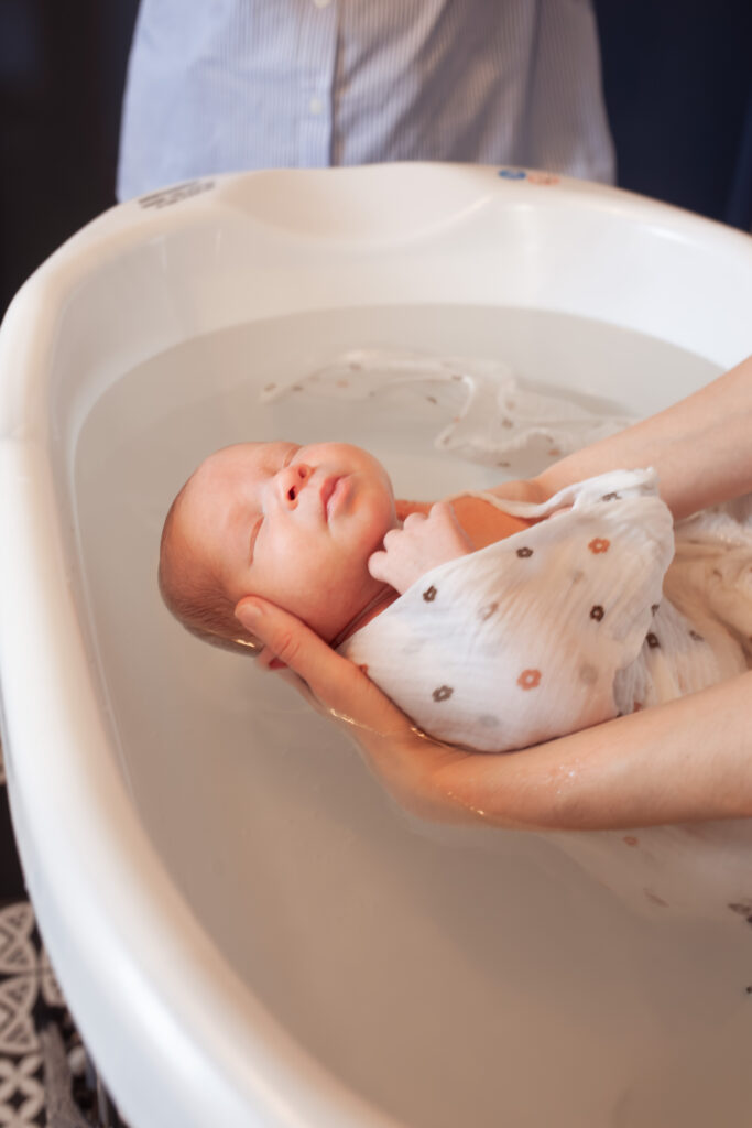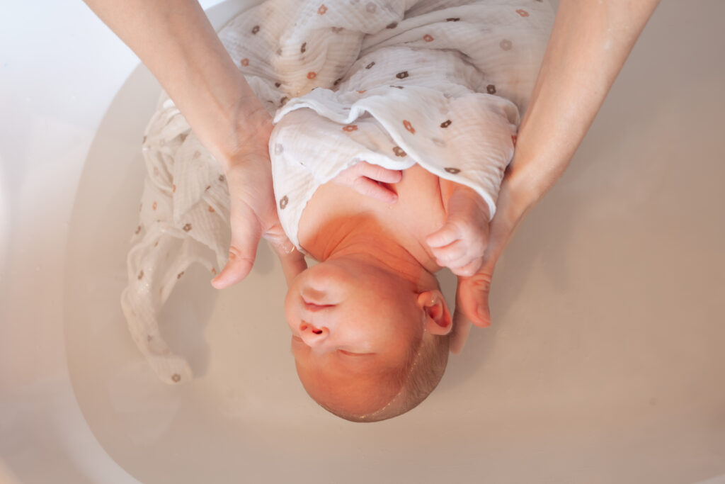Ce bain à domicile, peut être offert à tous les bébés de la naissance à 20 jours de vie. Pour les bébés prématurés, de la naissance à 20 jours + âge corrigé